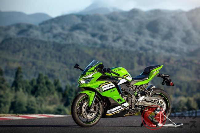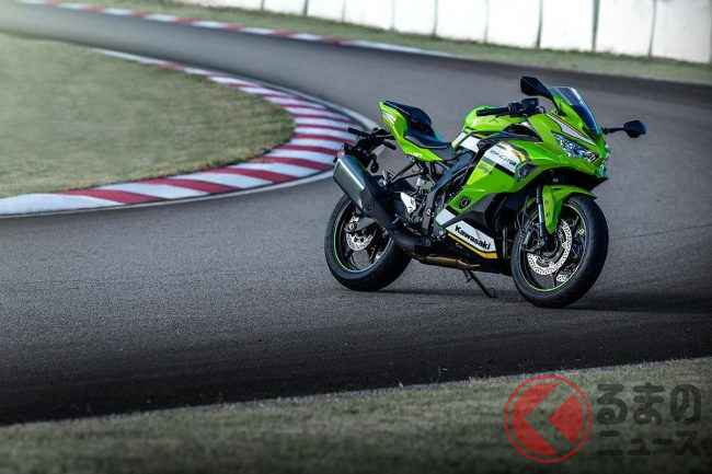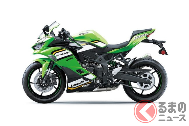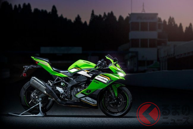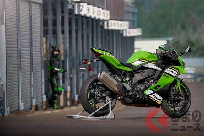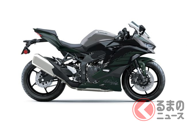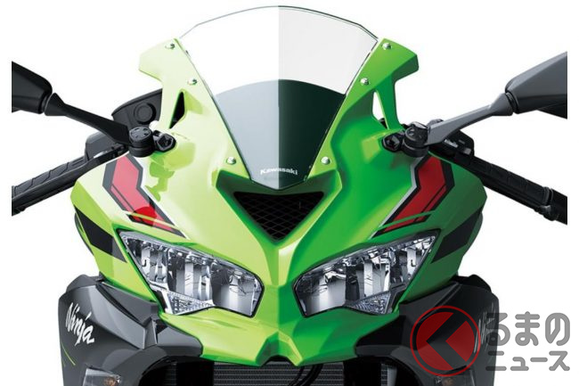 全長2m級で「4気筒エンジン」搭載! 6速MTの「新スポーツモデル」発表! 「軽量ボディ」&“精悍デザイン”採用の新たな「Ninja」 新色設定し9月発売