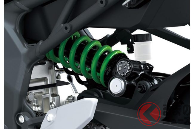 サスペンションはフロントはショーワ製SFF-BP倒立フロントフォーク、リアはカワサキ独自のホリゾンタルバックリンクリヤサスペンションを装備し、ハンドリング性能を高めました。