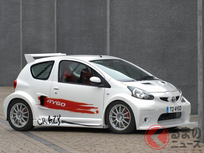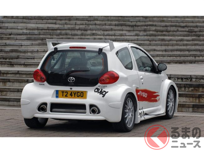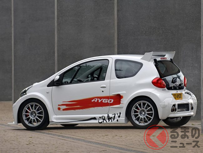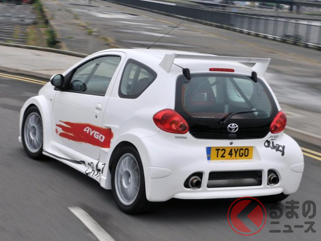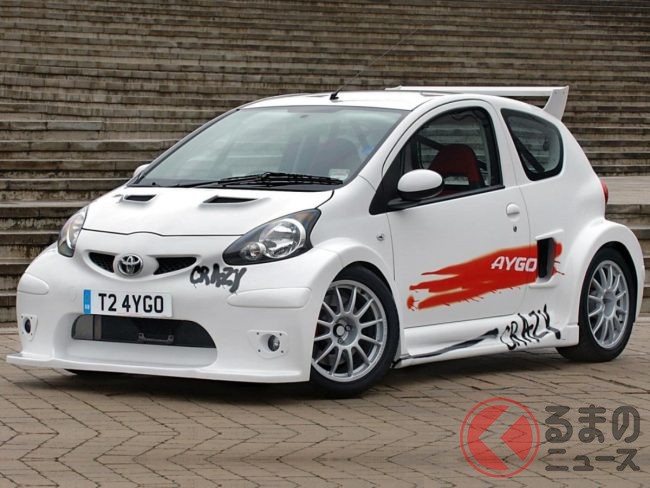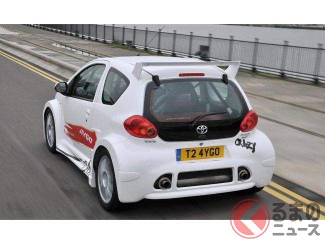 なお、同じAYGO CRAZYという名前が付けられたコンセプトカーは、初代アイゴ時代の2008年にイギリスでも制作されており、こちらは初代アイゴをベースにMR-Sに搭載されていた1.8リッターエンジンをターボ化してミッドシップに搭載し、同じくMR-S用の5速MTを介して後輪を駆動するというまさにクレイジーなもの。