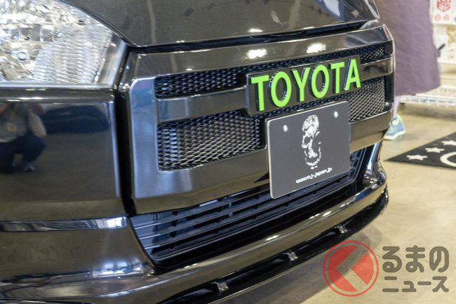フロントグリルは横基調にメッシュのインナーと、グリーンのアクセントが目をひく「TOYOTA」エンブレムを装着。さらに、アンダースポイラーも追加で備えることで、スポーツカーのような迫力が生まれました。