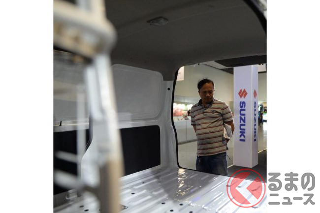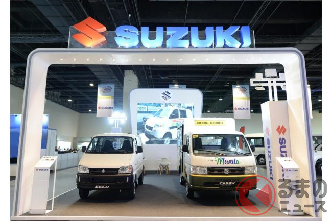 スズキが新型「商用バン」初公開! 3.7m級ボディに「超オシャレ内装」採用! 2人乗り&MT設定もある「イーコ」の「キャンピング仕様」南アに登場