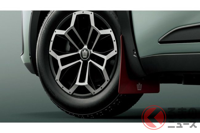 エクステリアは専用の「ブラック×アーバンカーキ」を採用。ウインドウモールやドアモール、ドアハンドル、トヨタエンブレム、HEVエンブレムなどもブラックアウト化し、王冠マーク入りの専用マッドガードを装着するなど、アウトドアギア感を演出。