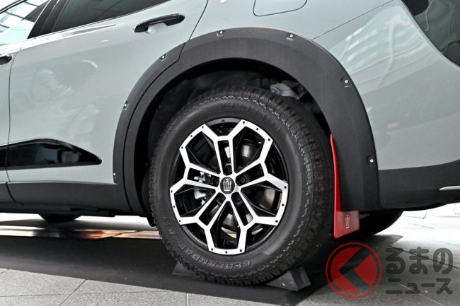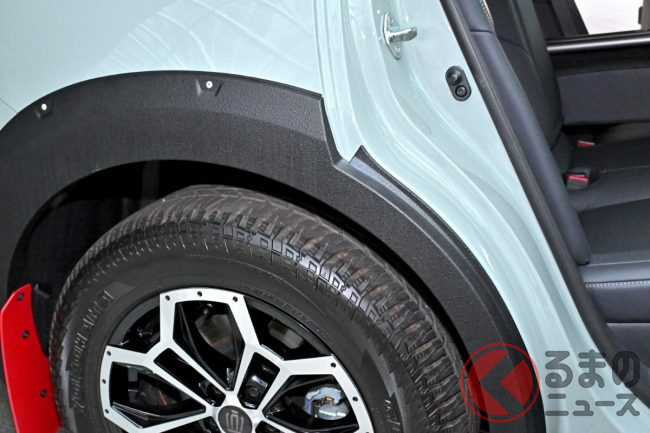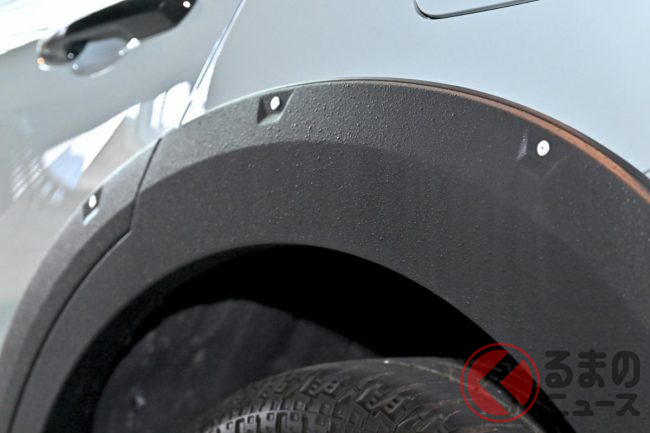 さらに、車幅が片側あたり20mm拡張される専用オーバーフェンダーモール(GORI GORI BLACK塗装)を装着。シルバーのリベットで留められ、本格四輪駆動車に負けず劣らずの無骨さがプラスされました。