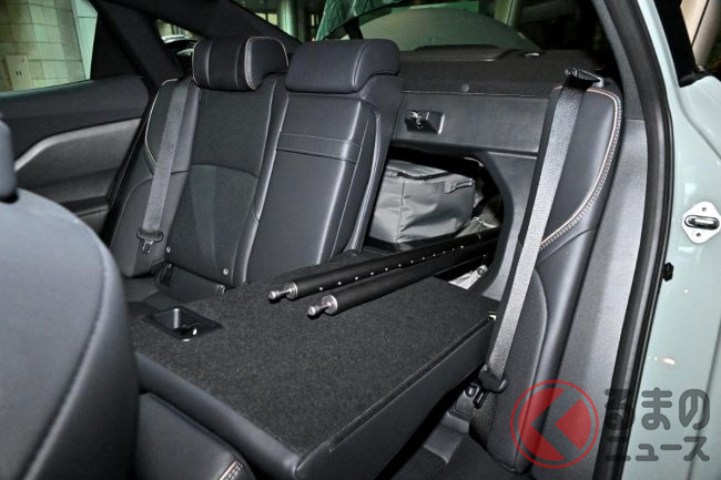 リアシートは通常モデルでは一体固定式、もしくはオプションでパワーリクライニングが標準ですが、ランドスケープ専用として60:40可倒分割式を採用。これにより、サーフボードなどの長尺物の積載にも対応しました。