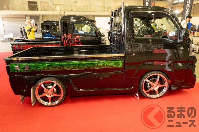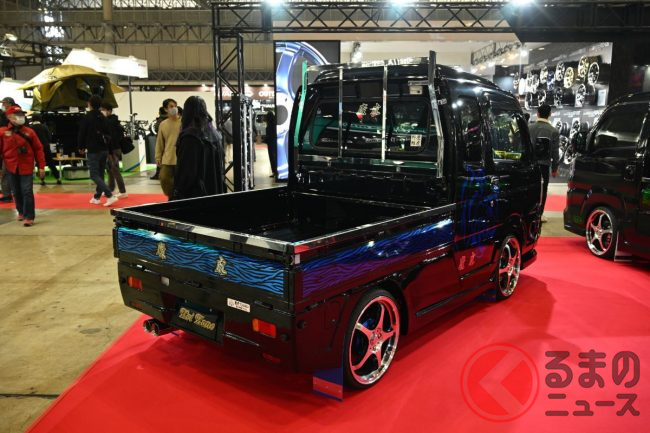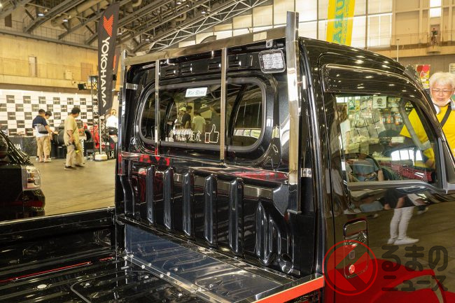 シフトは「北陸カスタムカーショーin金沢」で、黒いカラーリングとインパクトのある外観が印象的なダイハツ「ハイゼットトラック」のカスタムモデルを展示しました。一体どのようなクルマなのでしょうか。