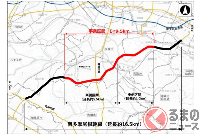 多摩エリアの“大動脈”で工事開始「南多摩尾根幹線」に反響多数!?「早く開通して」「ずっと側道のまま」 甲州街道~国道16号つなぐ東西軸の現在は