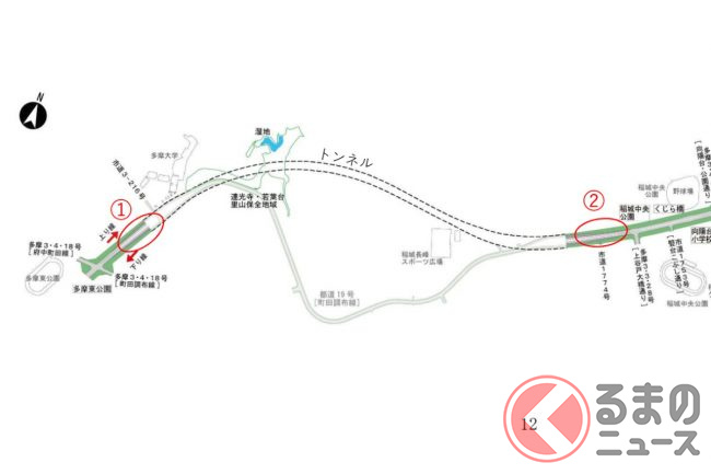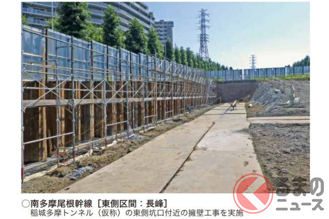 側道すらつながっていない若葉台公園地区でも、長さ約1.8kmに及ぶ「稲城多摩トンネル」で、2025年の掘削開始に向けた準備が進められています。