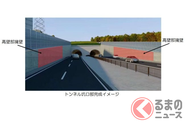 気になる工事進捗ですが、2020年に西側区間が、2021年に東側区間が事業化し、各工区で少しずつ擁壁や橋脚工事が始まっています。都市計画幅が確保されている敷地で中央部に本線を通すため、今回は用地取得がほぼ不要となっています。