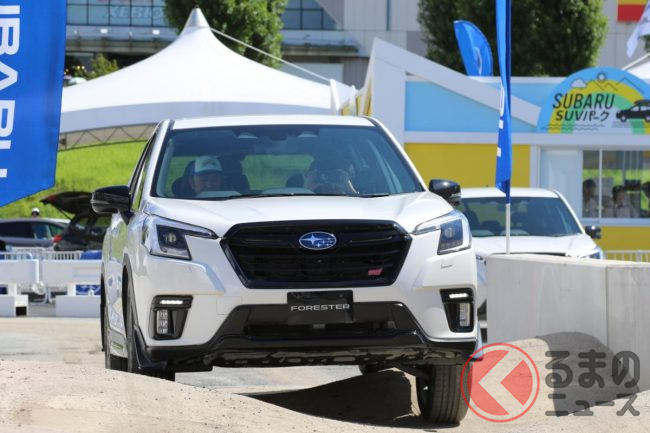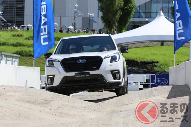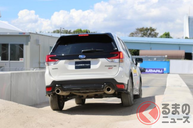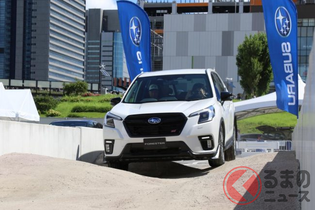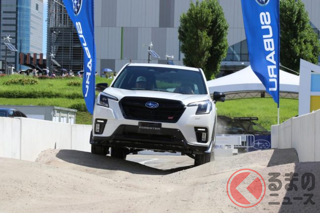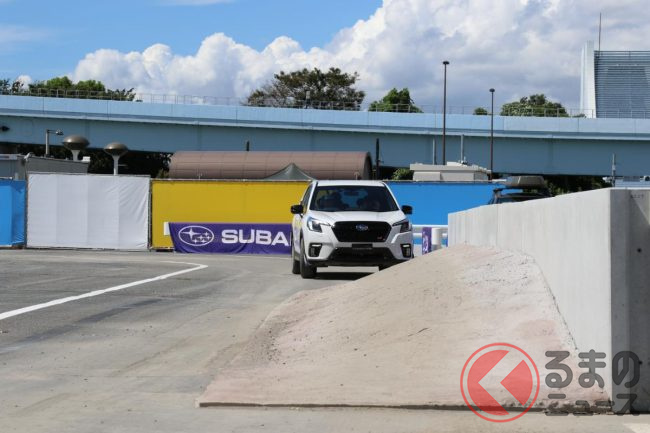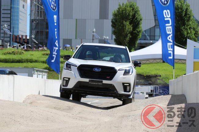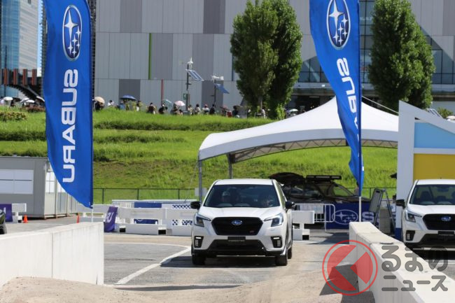 スバルは「お台場冒険王2024~人気者にアイLAND~」のオフィシャルパートナーとして参加し、イベント内で最新SUVラインナップの同乗体験や、車両展示などを実施しています。そのなかで、スバル最新SUVに同乗して悪路走破性能を体感できるブースが設けられています。