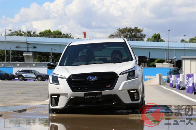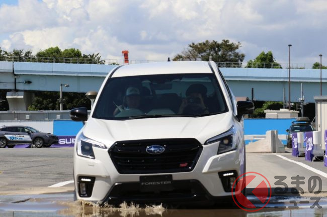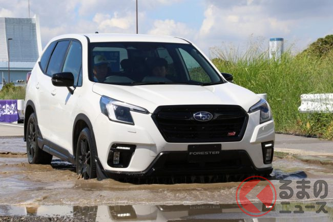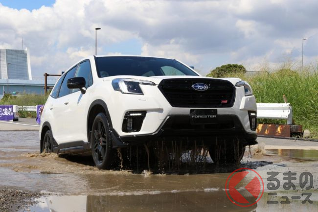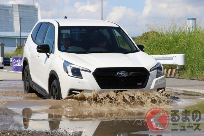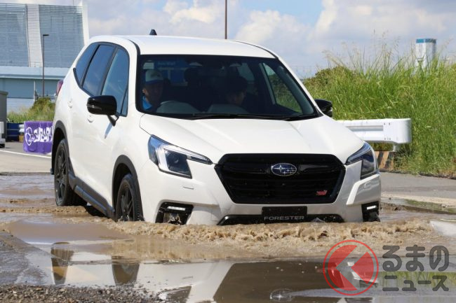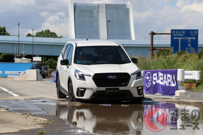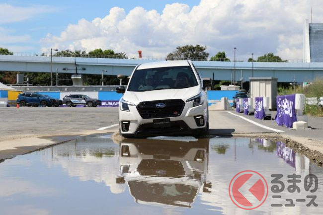 「凸凹道や深い水たまりも楽しくてサイコー!」 スバル「凄いSUV」がまるで「アトラクションみたい!?」 悪路もヨユーのクルマを体感してカンゲキ! “シンメトリカルAWD”の実力とは?