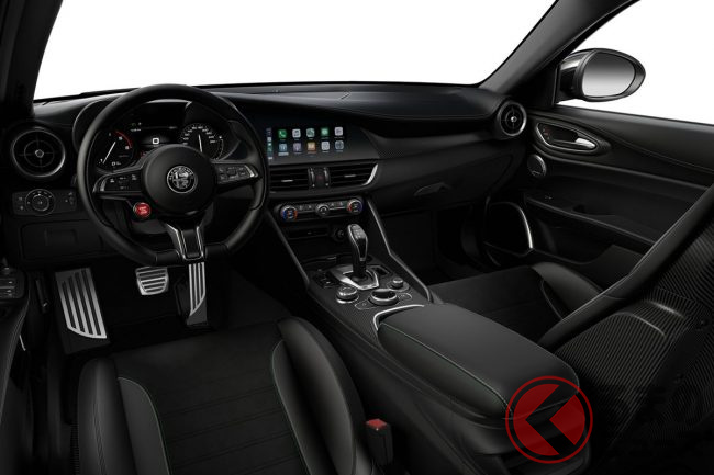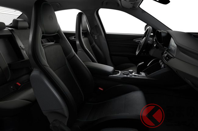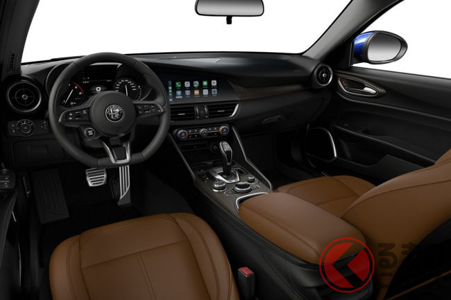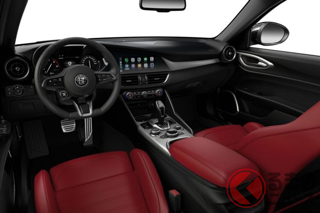 パワートレインに関して、「VELOCE(ヴェローチェ)」グレードには最大出力280馬力・最大トルク400Nmの2.0リッター直列4気筒ターボエンジン、ハイパフォーマンスグレードの「QUADRIFOGLIO(クアドリフォリオ)」には最大出力510馬力、最大トルク600Nmを発揮する2.9リッターV型6気筒ツインターボエンジンが搭載され、8速ATとFR駆動が組み合わされています。