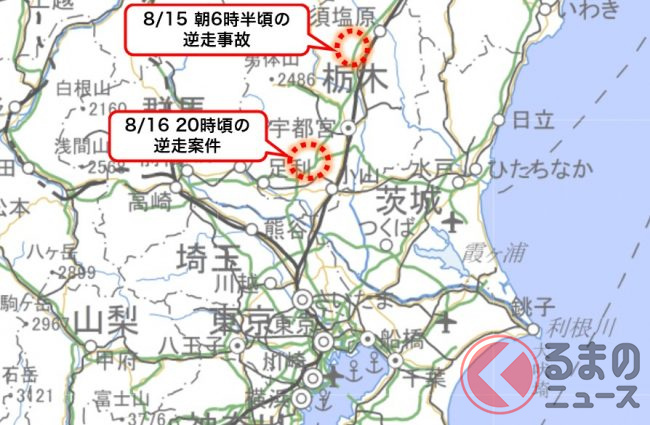 栃木県の東北道では、昨日15日の朝6時半ごろ、那須塩原市の下り線黒磯PA付近で、軽ワゴン車が逆走し、乗用車と正面衝突する事故が起こったばかり。