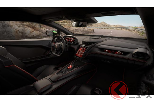 新型「“MR”スポーツカー」世界初公開! “1万回転”まで回る「V8」搭載! 斬新「六角形デザイン」が超カッコイイ「ランボルギーニ」登場
