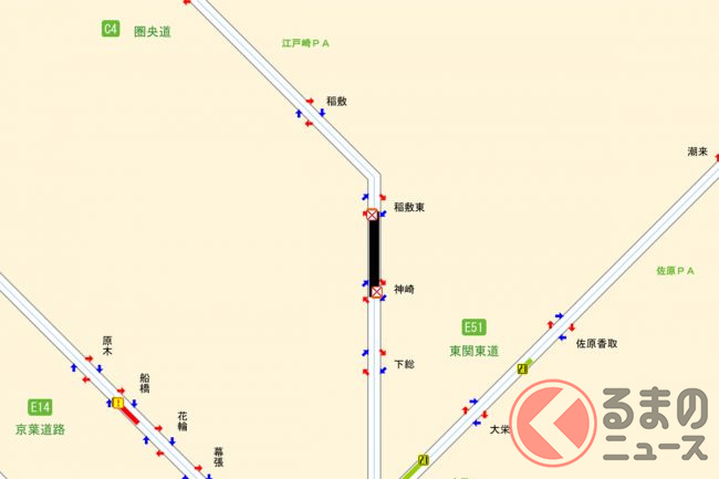 これに伴って、外回りの稲敷東ICでは渋滞が発生しています。