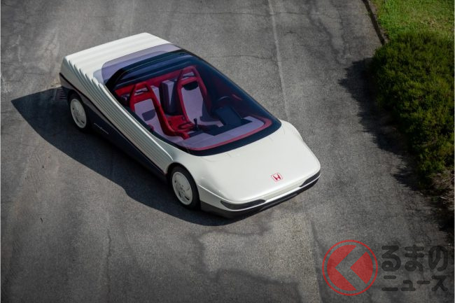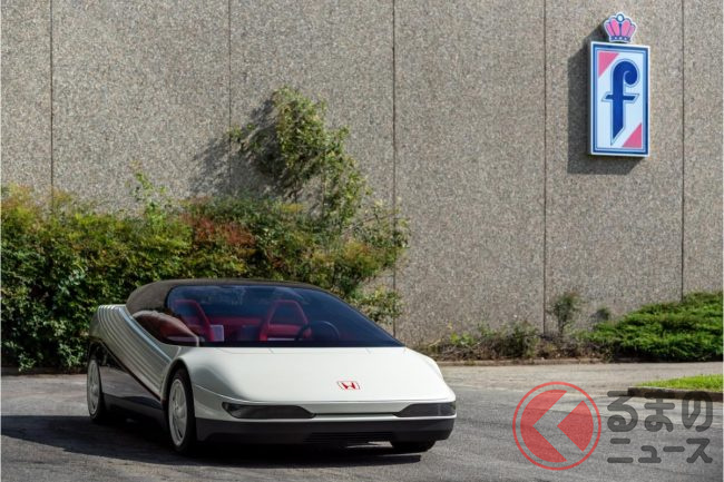 40年ぶり復活! ホンダ「和製スーパーカー」公開! 赤い「Hエンブレム」&全長4.2m切り「斬新ボディ」! 2リッターV6×MT搭載「MRクーペ」米で展示