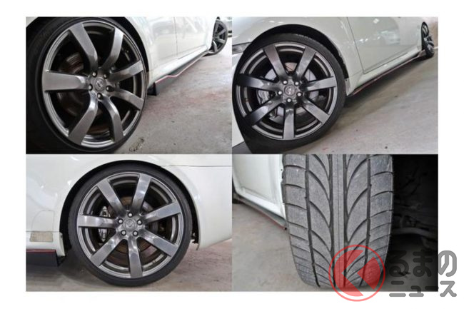 さらに、足元はGT-R純正アルミホイールに変更されています。