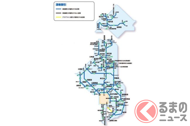 例えば、NEXCO3社と宮城県道路公社が行っている深夜割引は、全ての車種を対象に、毎日0時から4時のETC利用で一部区間の料金が30%引きになります。