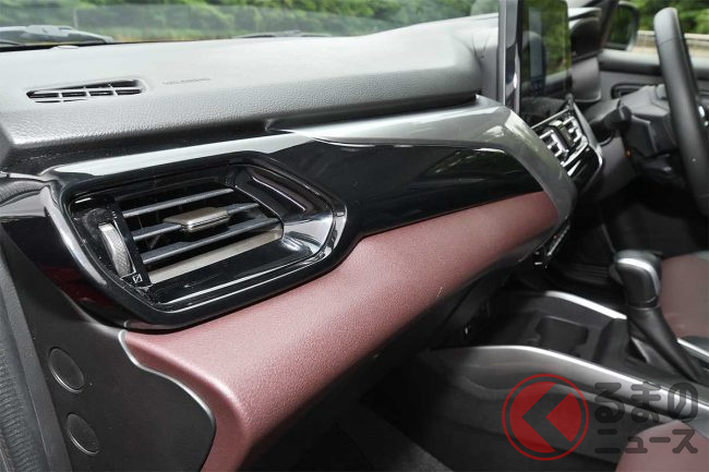 実際に新型フロンクスの車内に座ってみると、光の当たり方によって茶色みが強く見えたり、赤みが強く見えたりと、見る時々によって同じボルドーでも雰囲気が変わって見えることが確認できました。