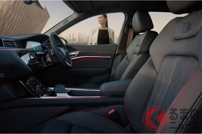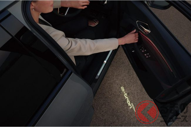ドアの開閉時にはドアエントリーライトにより「e-tron edition」の文字が地面に映し出されるという、光の演出で乗員を迎える機能も備わっています。