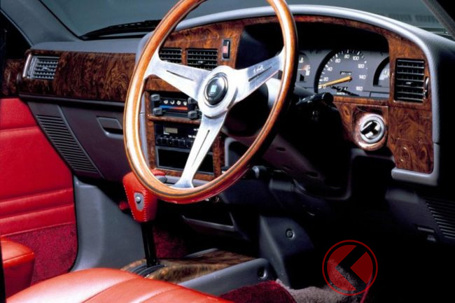 見た目には、ハイラックスがベースと判別することが困難なほど手が加えられた外観に仕上がっている。クラシカルな黒と濃赤の2トーンで、メッキバンパー、ホワイトリボンタイヤ、本革製シート、ウッドリム・ステアリングホイール、木目調インストルメントパネルなど、クラシックカーの雰囲気が再現されている。