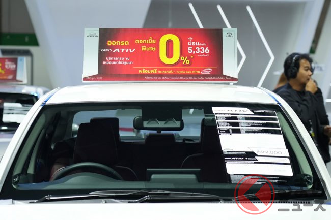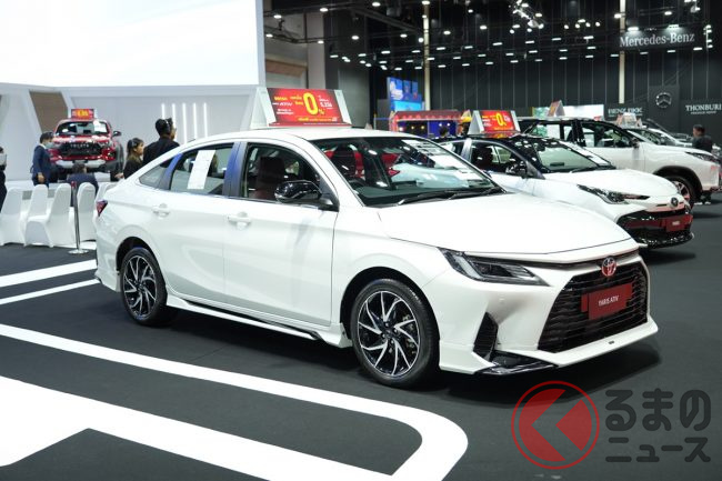 トヨタのタイ法人はバンコクで開催の「バンコク国際グランドモーターセールス2024」で、「ヤリスエイティブ」を展示しました。