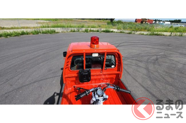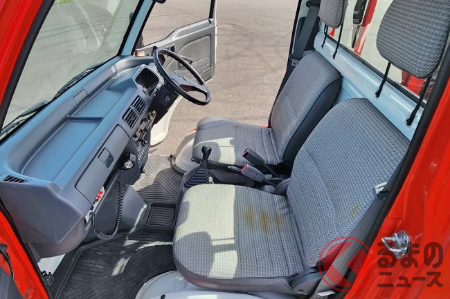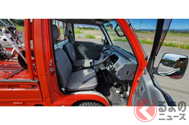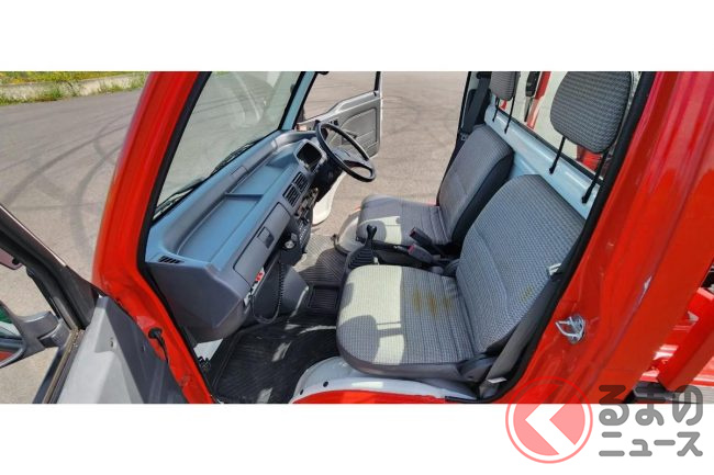 さらに、毎日稼働前に日常点検が実施される消防車両だったということもあり、外装だけでなく内装やエンジンルームの隅々まで、手入れが行き届いた極上個体です。助手席シートにはシミがありますが、26年が経過した軽商用車と考えると、じゅうぶん良い程度だといえるでしょう。