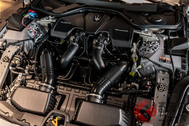 今回販売されているクアトロポルテ エボルツィオーネは、輸入後、フヂイエンヂニアリング株式会社でエンジンを載せ替えたといいます。