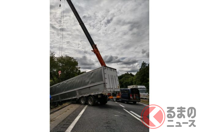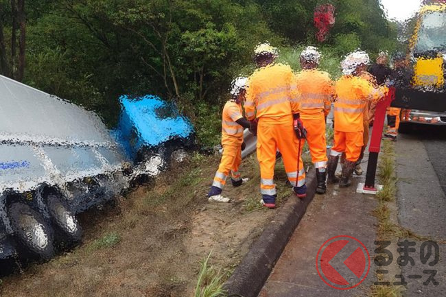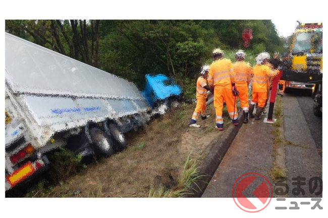 中央道が「事故」で一時通行止め! 「トレーラー」が路外逸脱! 東名「大雨通行止め」も重なり東京→大阪方面は「迂回」が必要に