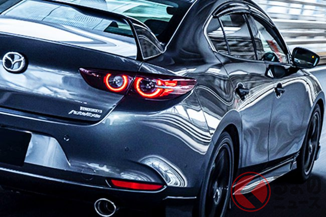 マツダ新型「スポーティ“セダン”」発売! “巨大ウイング”&精悍エアロの「BP-07」! 迫力マシマシの「マツダ3」登場!