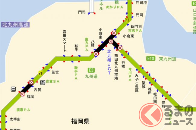 ・九州道 上下線 八幡IC~小倉東IC・福岡IC~古賀IC・えびのIC~鹿児島IC
