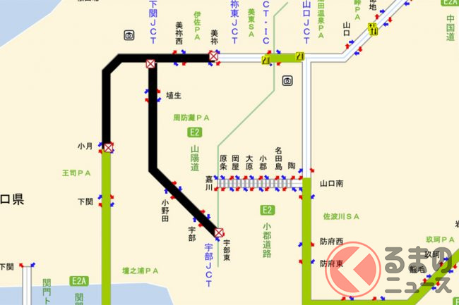・山陽道 上下線 下関JCT~宇部JCT