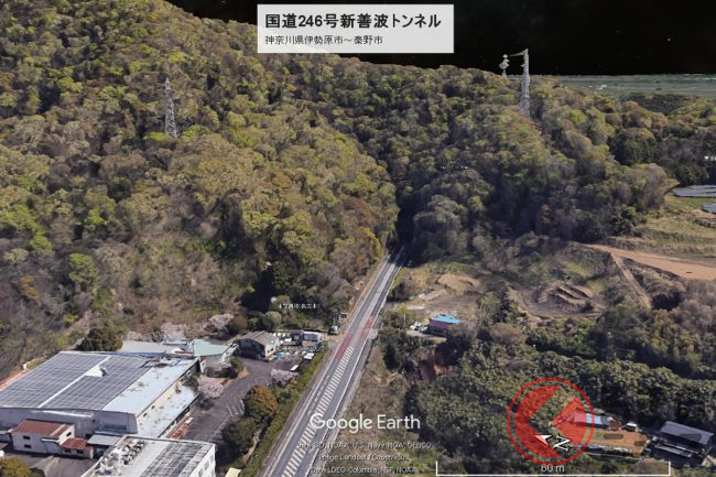 新善波トンネルは、神奈川県伊勢原市と秦野市のちょうど市境にあります。