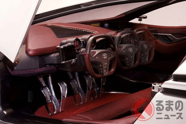 トヨタ「“3人横並び”スーパーカー」公開に世界がビックリ! 斬新すぎる「前席3シーター」採用! ド迫力の「ガルウィングドア」も搭載した“400馬力超えモデル”とは