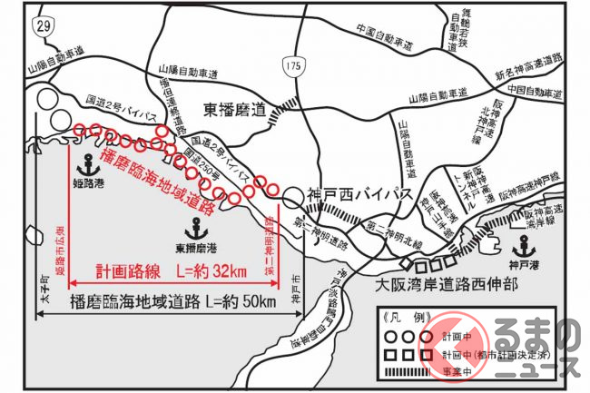 兵庫県の明石・姫路エリアで、臨海部の新たな東西軸となる高規格道路「播磨臨海地域道路」の計画が進んでいます。