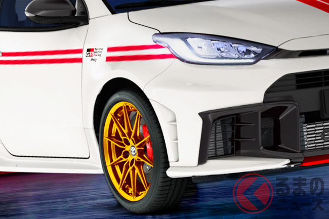 “1000万円”超えのトヨタ「すごいヤリス」発表! 斬新「ゴールドホイール」&名車オマージュ仕様! 限定車の特別な「GRヤリス」イタリアで登場!