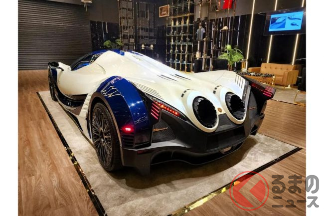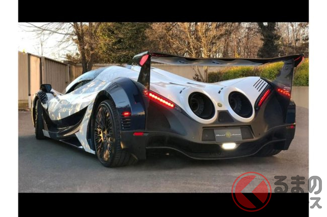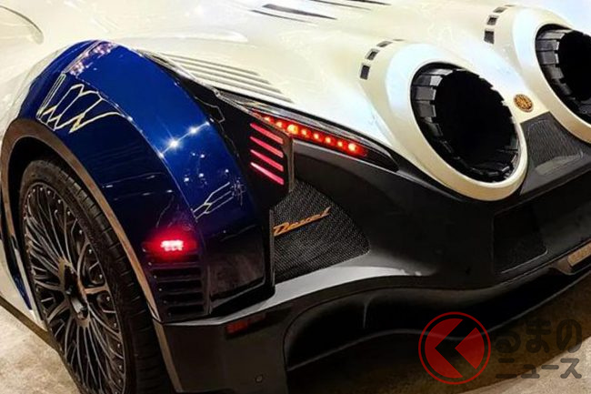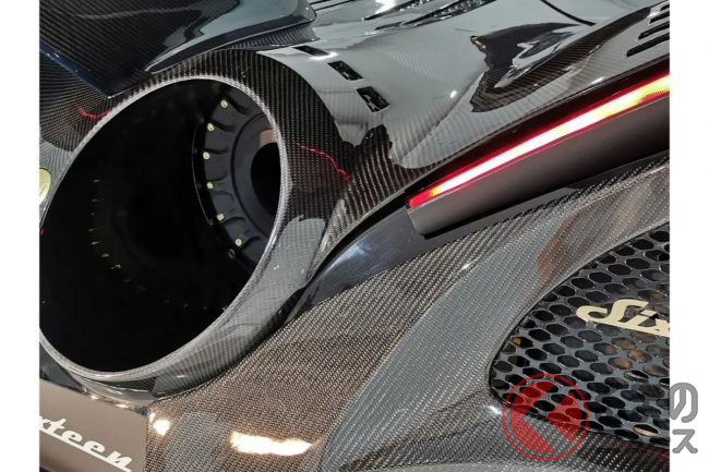 リア部分には、ジェットエンジンをイメージしたというデュアルエキゾーストマフラーがついており、やはりこちらも通常のクルマでは考えられないほど巨大です。