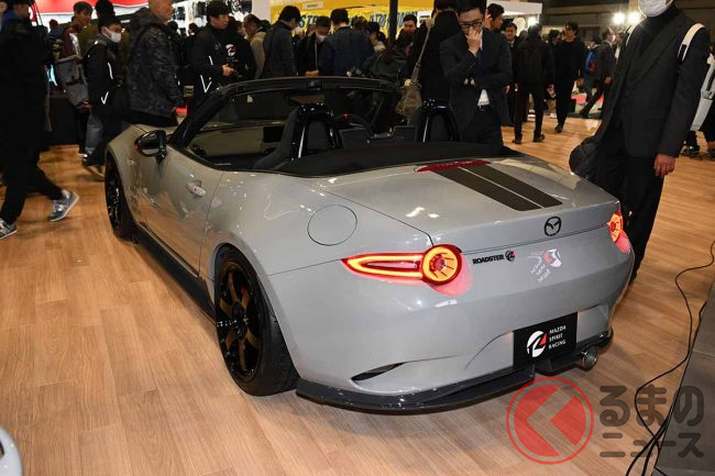マツダ新型「“スゴい”ロードスター」実車公開! 国内初の「ソフトトップ×2リッターエンジン」搭載! 市販化予定の新型「RS C」近畿以西で初展示