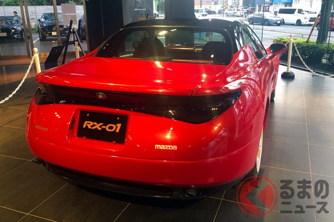 マツダはロータリースポーツカーのコンセプトカー「RX-01」を、2024年9月1日まで関東マツダ 洗足店(大田区)で実車公開しました。幻のモデルとされるRX-01に対し、SNSなどでは多くの反響が寄せられています。