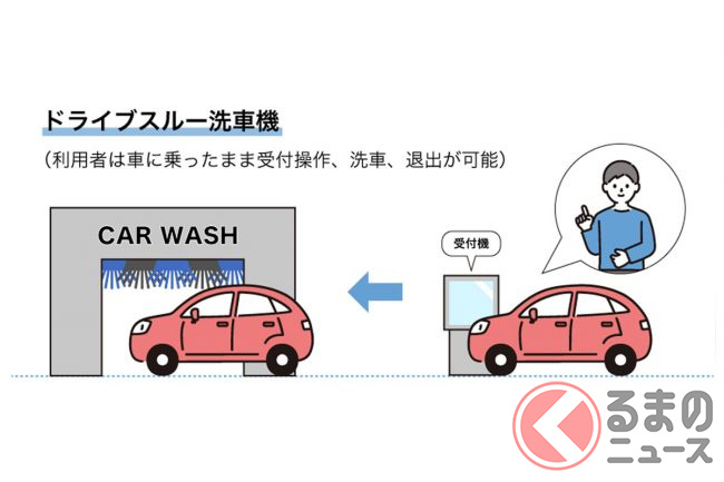 ドライブスルー洗車機はクルマに乗ったまま利用する方式で、ガソリンスタンドに置かれている洗車機の多くが採用しています。