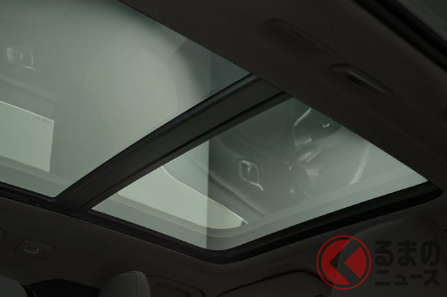 前回からの改良点は、明るさと開放感を車内に届ける、チルトアップ機構付電動パノラマ・ガラス・サンルーフが装備されています。