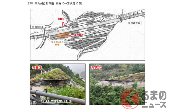 九州の高速「大規模災害」今も続く! 「すごい土砂崩れ&斜面崩落」で通行止め発生… 大分道は9日“完全復活”も東九州道は「期間を要します」 NEXCO発表