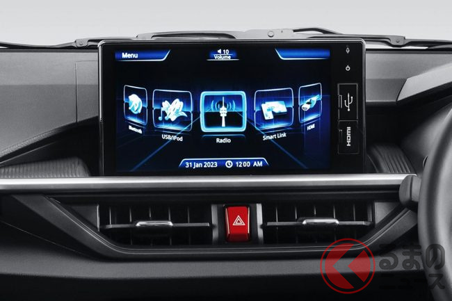 内装は、エンジン プッシュ スタート/ストップ ボタンやチルト ステアリング、スマートフォンと接続可能なタッチスクリーンの7インチ ディスプレイオーディオ 、デュアルエアコンなどが装備されています。