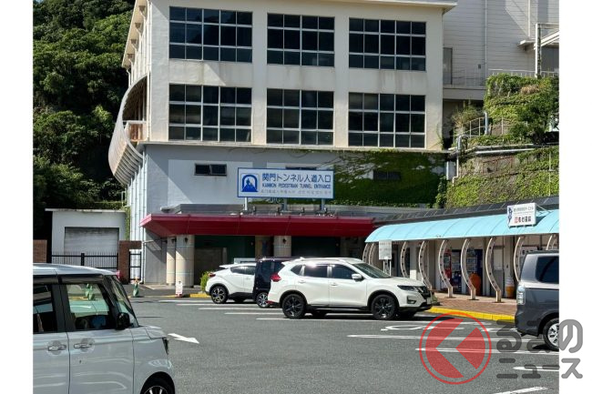下関側の人道入口のそばは、駐車場が整備されています。門司側の入口も近くに駐車場があるため、クルマで来てトンネルを歩いて往復することも可能です。