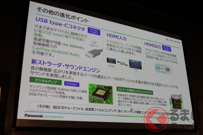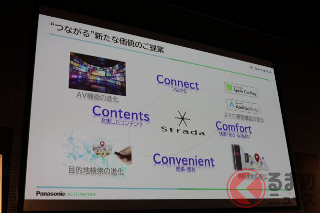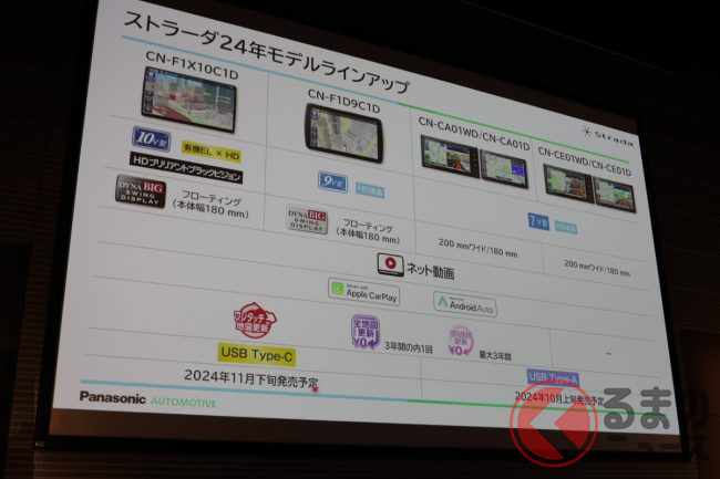 パナソニック オートモーティブシステムズは2024年9月12日、パナソニックセンター東京ホール(東京都江東区)にてメディア向けに「2024秋 ストラーダ新製品発表会」を行い、同社のストラーダブランドからオンライン接続に対応したカーナビ6機種を発表しました。