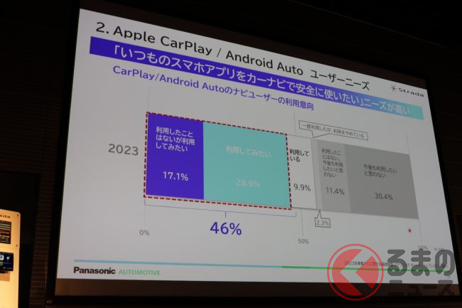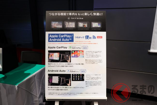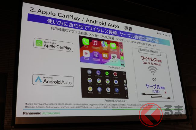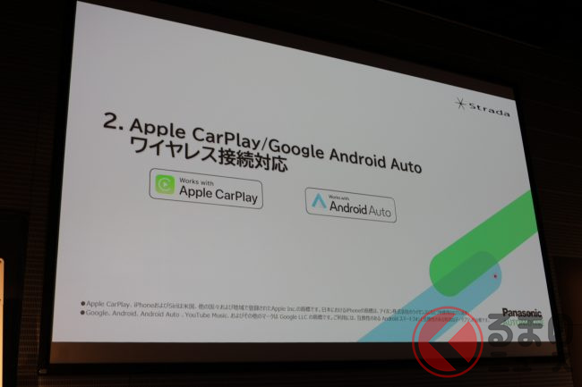 さらに、スマートフォンのアプリを安全にクルマの中でも使いたいというユーザーの声に応え、「Apple CarPlay」「Andoroid Auto」にも新たに対応。同機能は有線接続はもちろんワイヤレスでも接続可能とのことです。