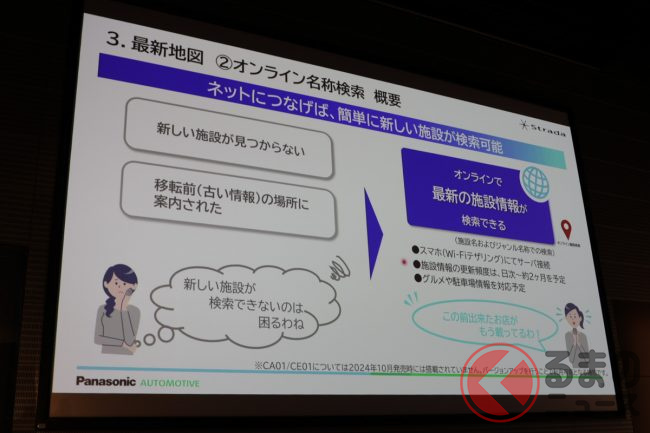 パナソニック オートモーティブシステムズによると、今回の新製品からナビに搭載される地図の更新をより簡便にしているといいます。