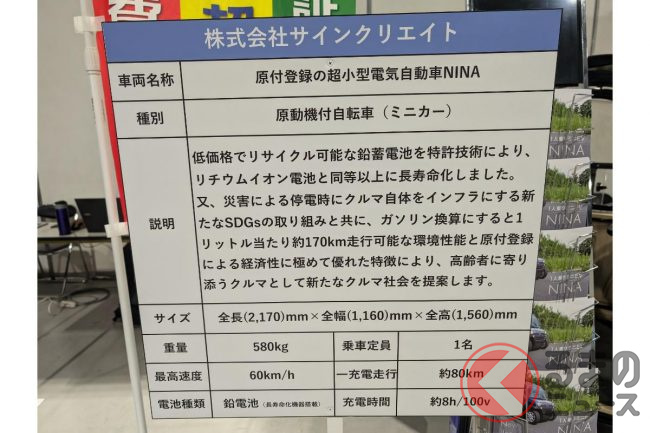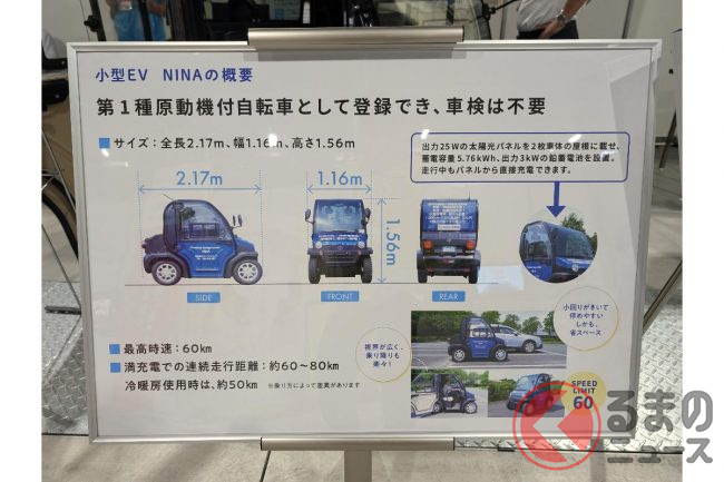全長2.17m!? 斬新「1人乗りモデル」が凄い! 丸目×大型ウインドウ採用! 維持費ゲキヤスな新「NINA」とは