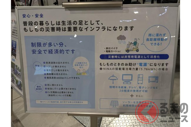 「NINAは、普段の暮らしで足として使える乗りものです。原付ミニカー区分なので、高速道路に乗れない、1人しか乗れないなどの制約はありますが、地方部などでは需要が高まっています。