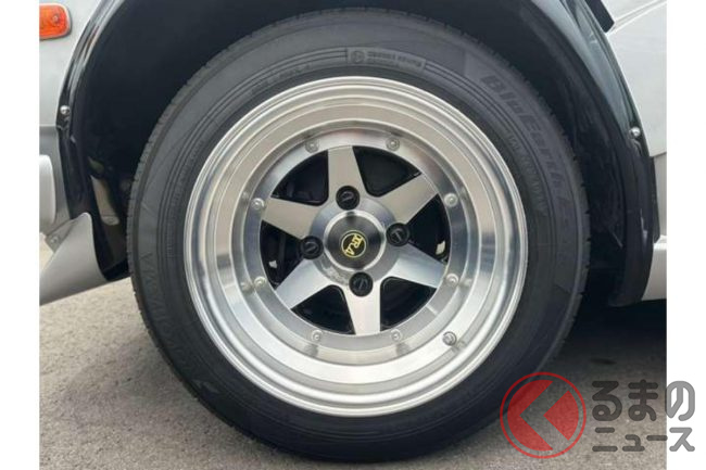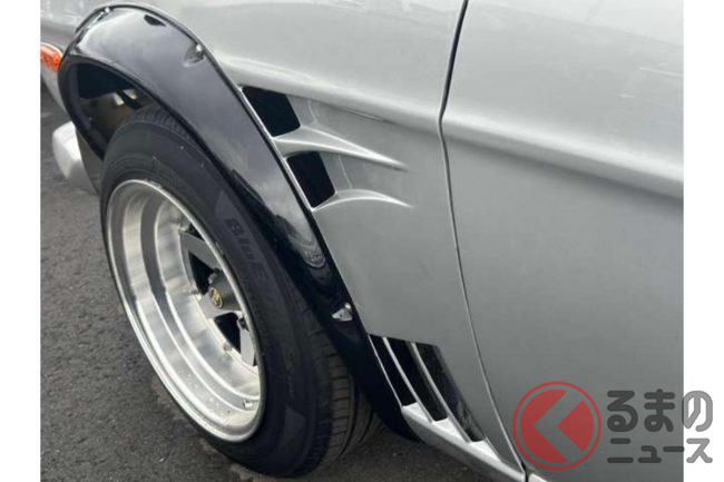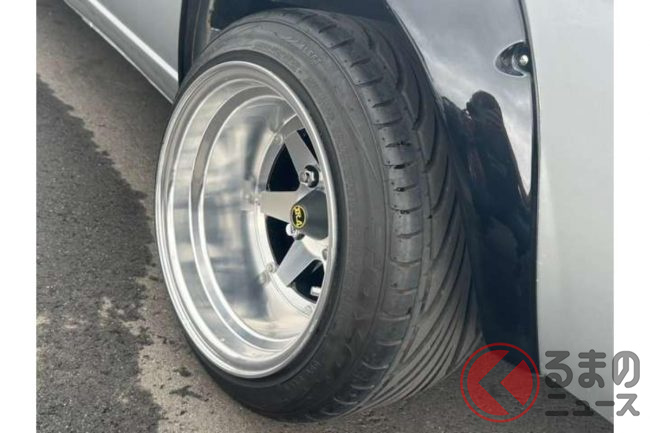 オーバーフェンダーに収められているホイールは、旧車乗り御用達のロンシャン社製アルミホイールで、14インチのディープリムが採用されています。