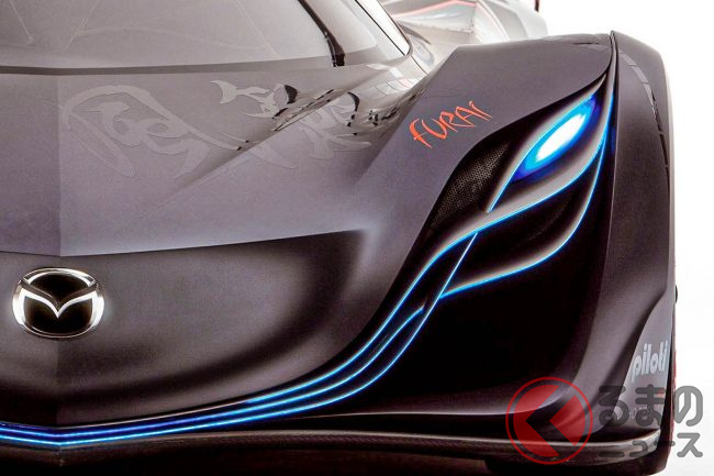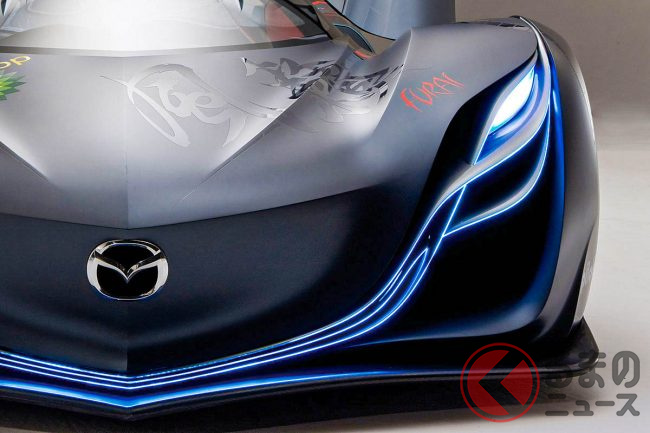 マツダの「和製スーパーカー」に反響多数! “3ローター”エンジン搭載の「超美麗マシン」に「カッコイイ」の声も! 「675kgボディ」採用の「FURAI」が話題に
